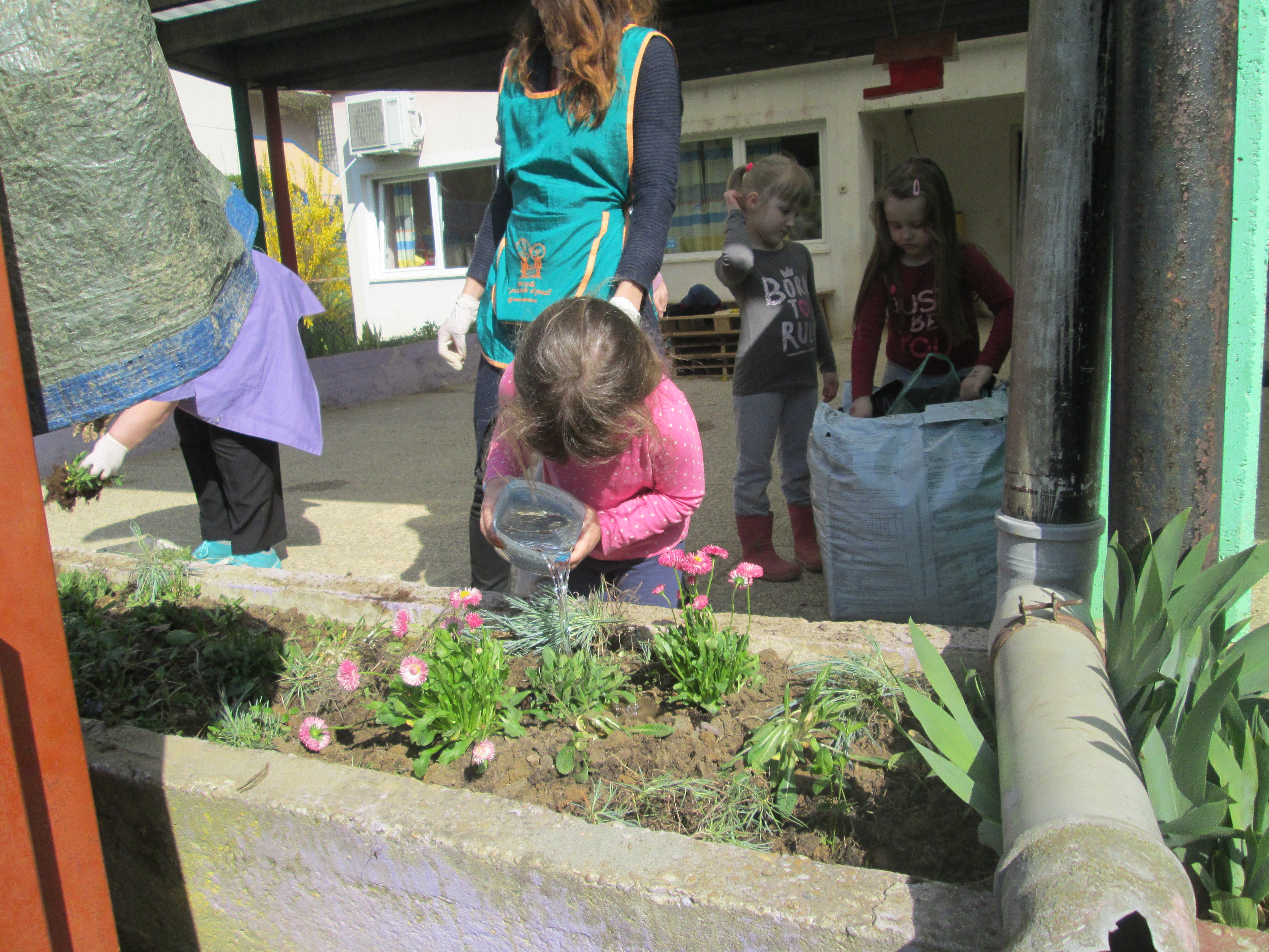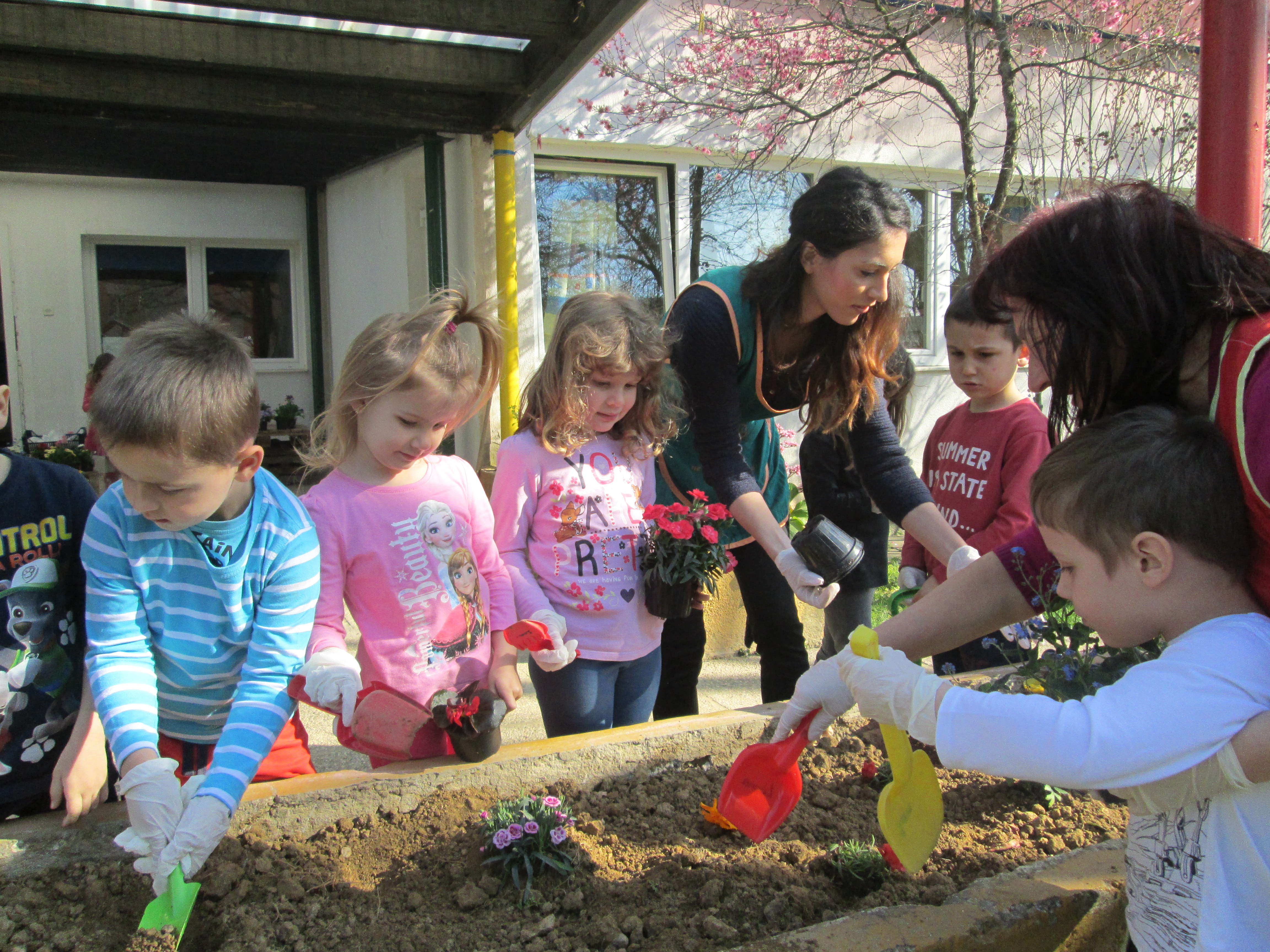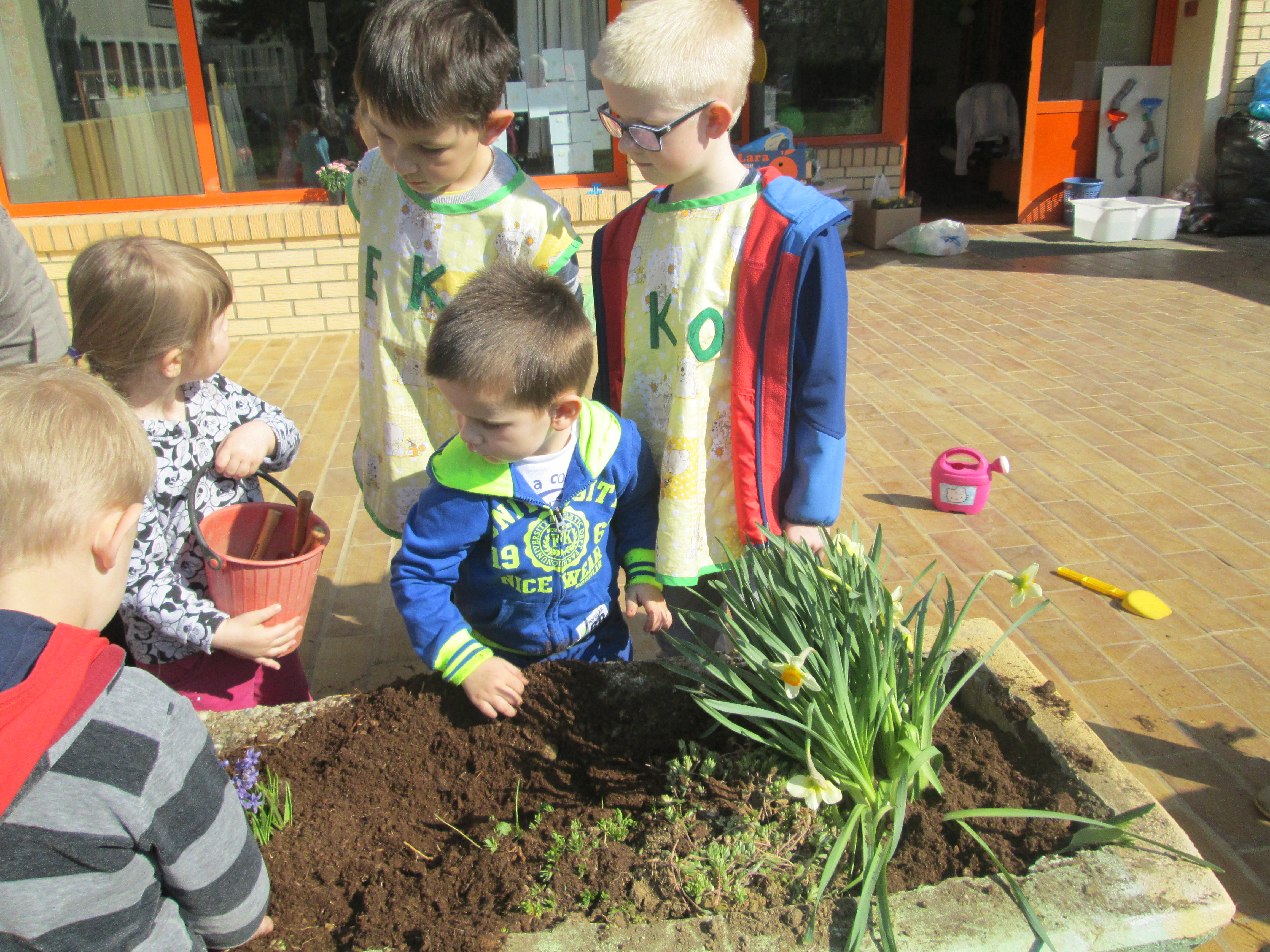 U petak, 31.03.2017. u Dječjem vrtiću Križevci održan je projektni dan. Od jutra je bilo živo i aktivno na našim terasama gdje su vrijedne ruke djece, odgojiteljica, roditelja i baka uređivale cvjetnjake. Sadnice smo prikupili u suradnji s roditeljima i Komunalnom poduzećem Križevci. Osim sadnica cvijeća zasađene su i sadnice drveća u suradnji sa Šumarijom Križevci. Eko patrola je budnim okom pratila odvijaju li se navedene aktivnosti pravilnim redoslijedom jer kako su sami rekli – trebamo pripremiti zemlju, iskopati rupu, staviti biljku, pritisnuti zemljom i zaliti. Da bi naše biljke rasle moramo im uz dobru zemlju, svjetlost i toplinu osigurati i dovoljno vlage pa će svaka odgojna skupina voditi brigu o svom malom cvjetnjaku i redovito ga zalijevati.