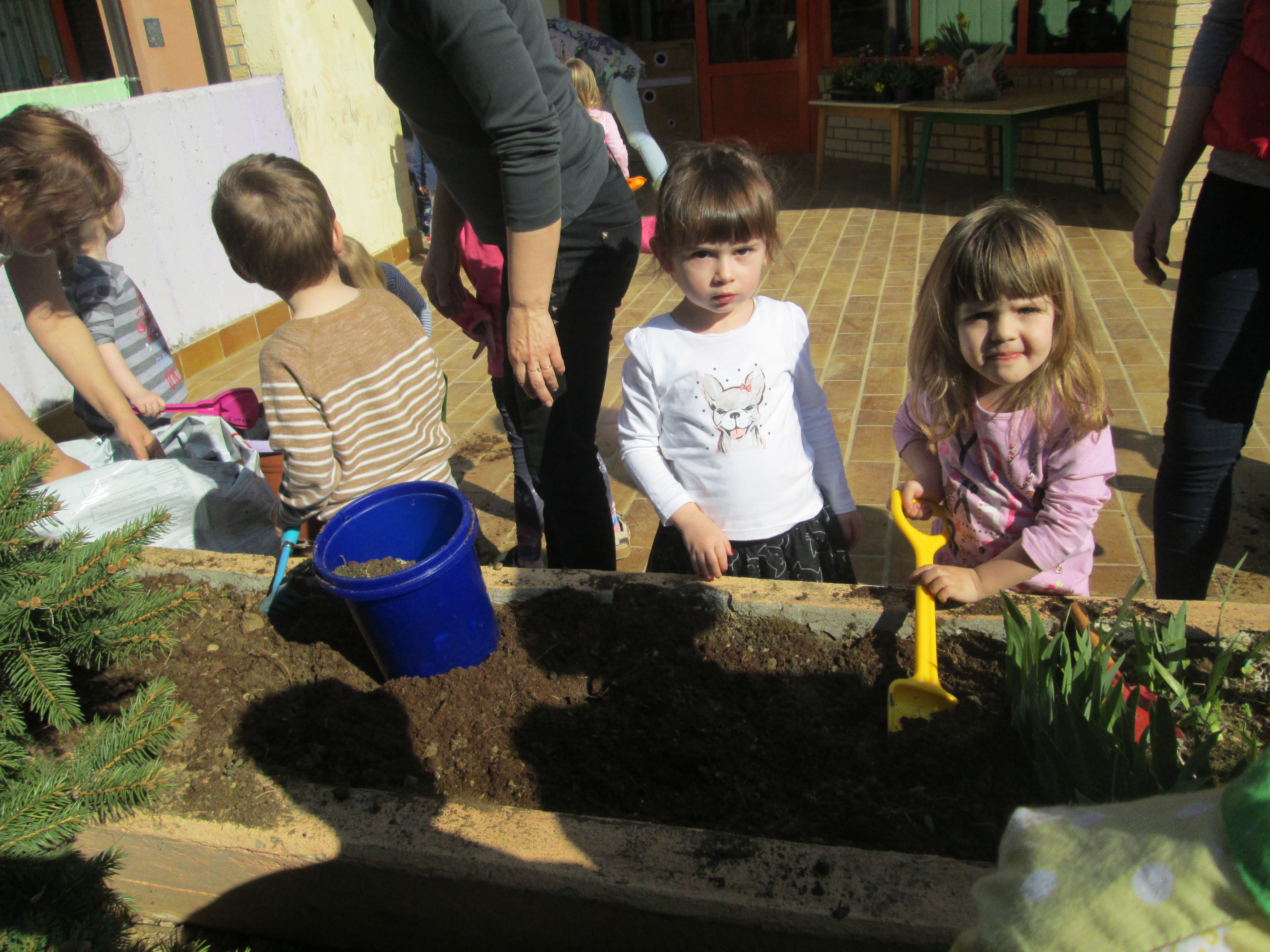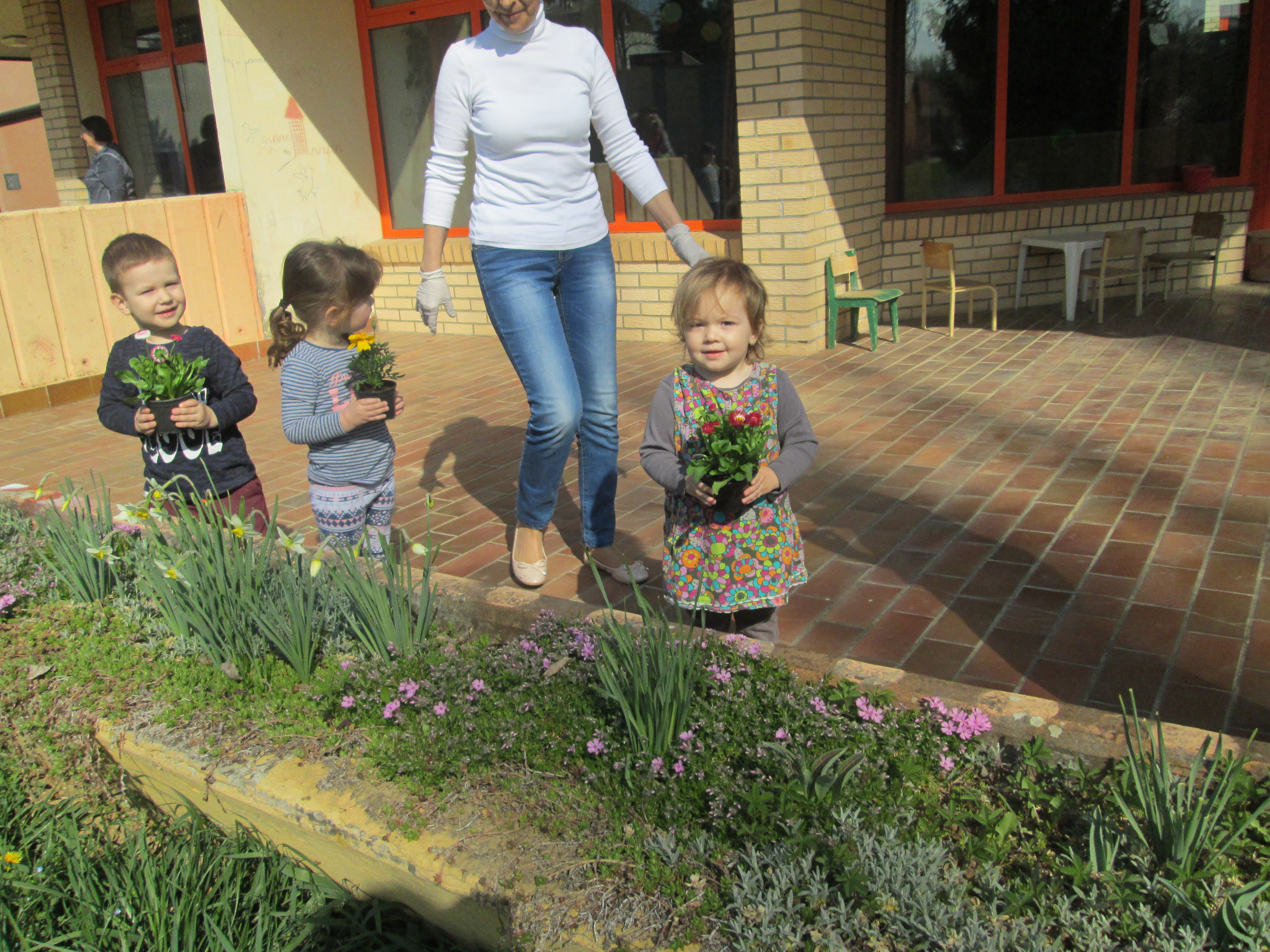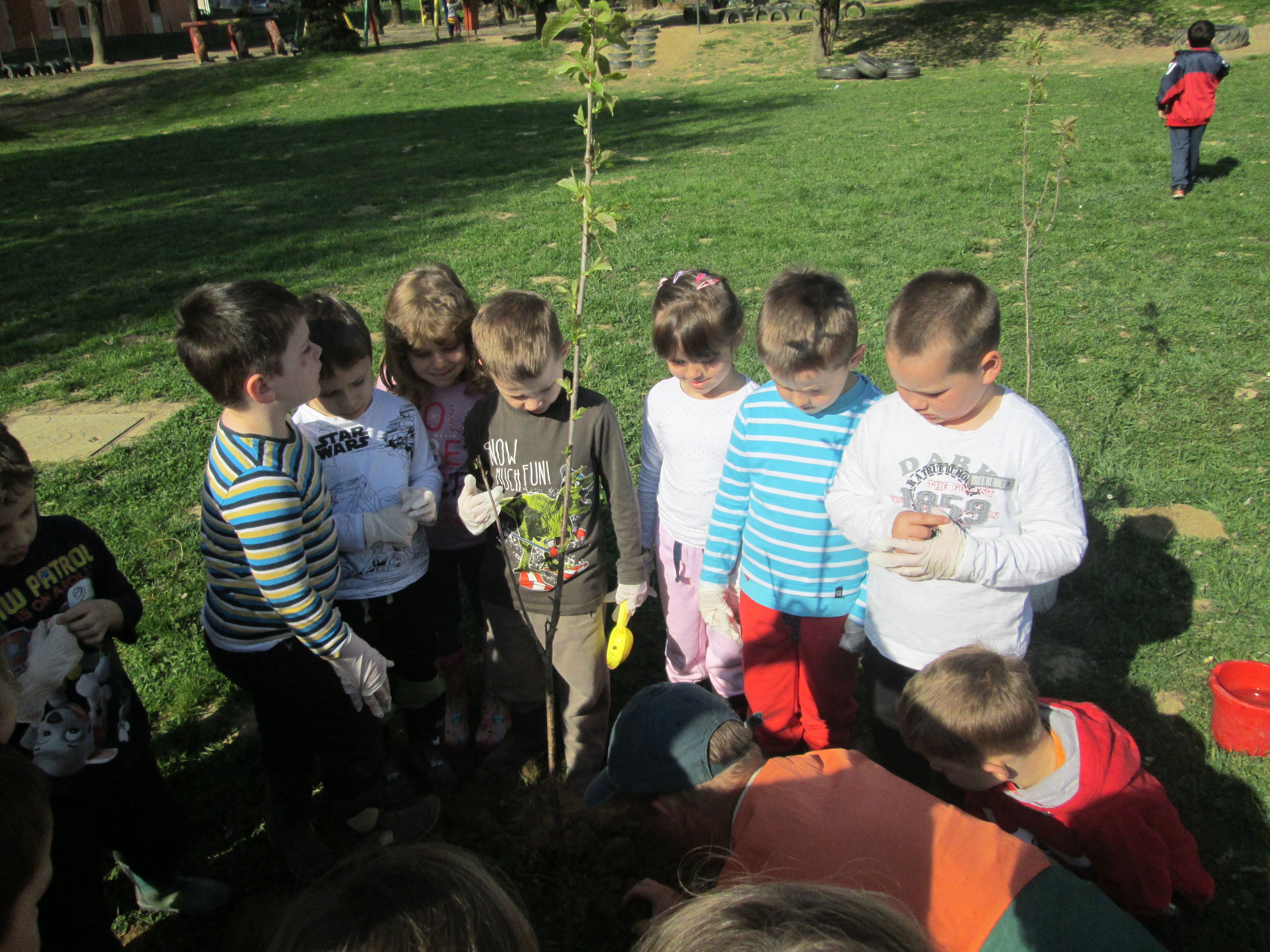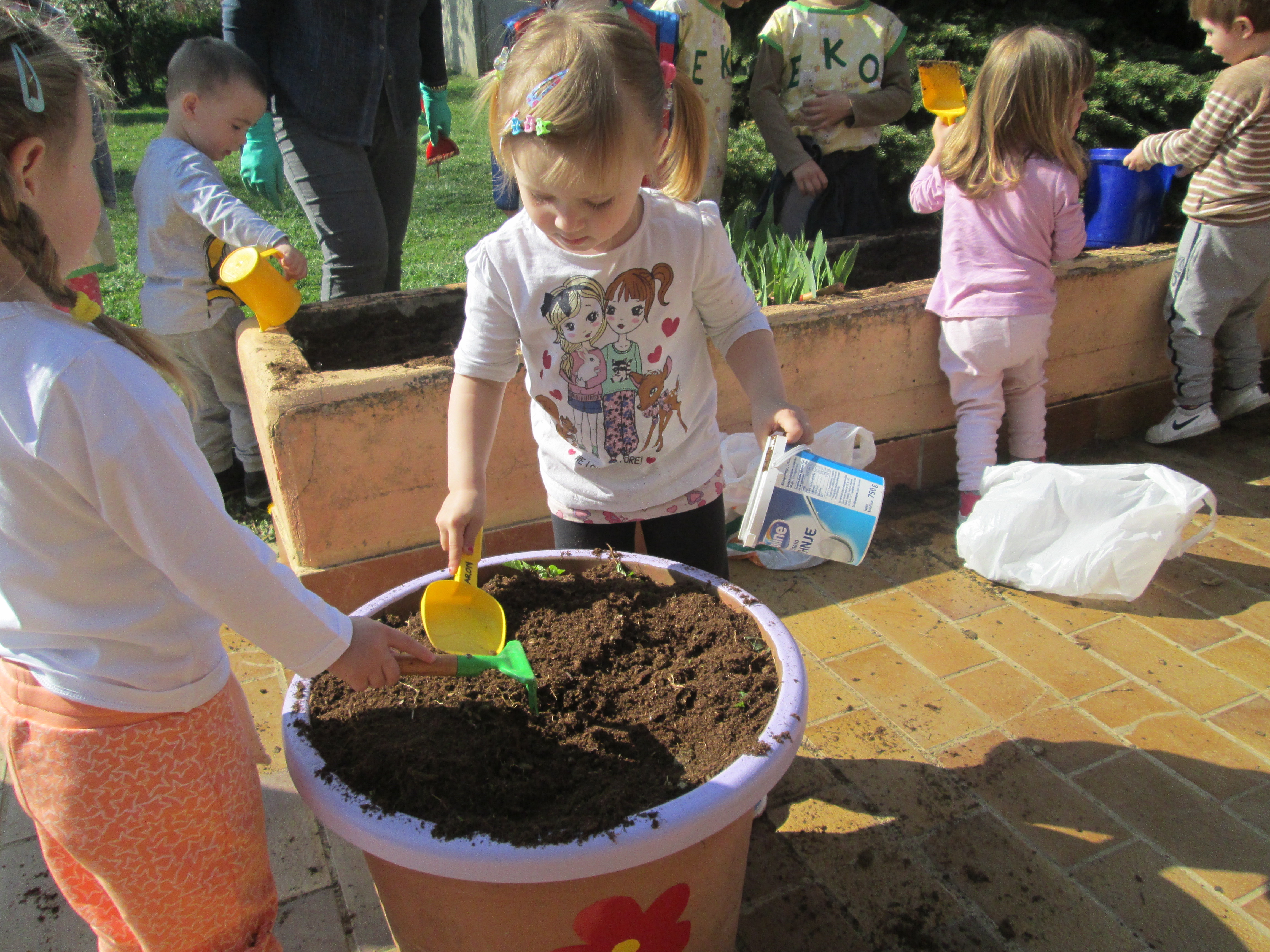 U petak, 31.03.2017. u Dječjem vrtiću Križevci održan je projektni dan. Od jutra je bilo živo i aktivno na našim terasama gdje su vrijedne ruke djece, odgojiteljica, roditelja i baka uređivale cvjetnjake. Sadnice smo prikupili u suradnji s roditeljima i Komunalnom poduzećem Križevci. Osim sadnica cvijeća zasađene su i sadnice drveća u suradnji sa Šumarijom Križevci. Eko patrola je budnim okom pratila odvijaju li se navedene aktivnosti pravilnim redoslijedom jer kako su sami rekli – trebamo pripremiti zemlju, iskopati rupu, staviti biljku, pritisnuti zemljom i zaliti. Da bi naše biljke rasle moramo im uz dobru zemlju, svjetlost i toplinu osigurati i dovoljno vlage pa će svaka odgojna skupina voditi brigu o svom malom cvjetnjaku i redovito ga zalijevati.