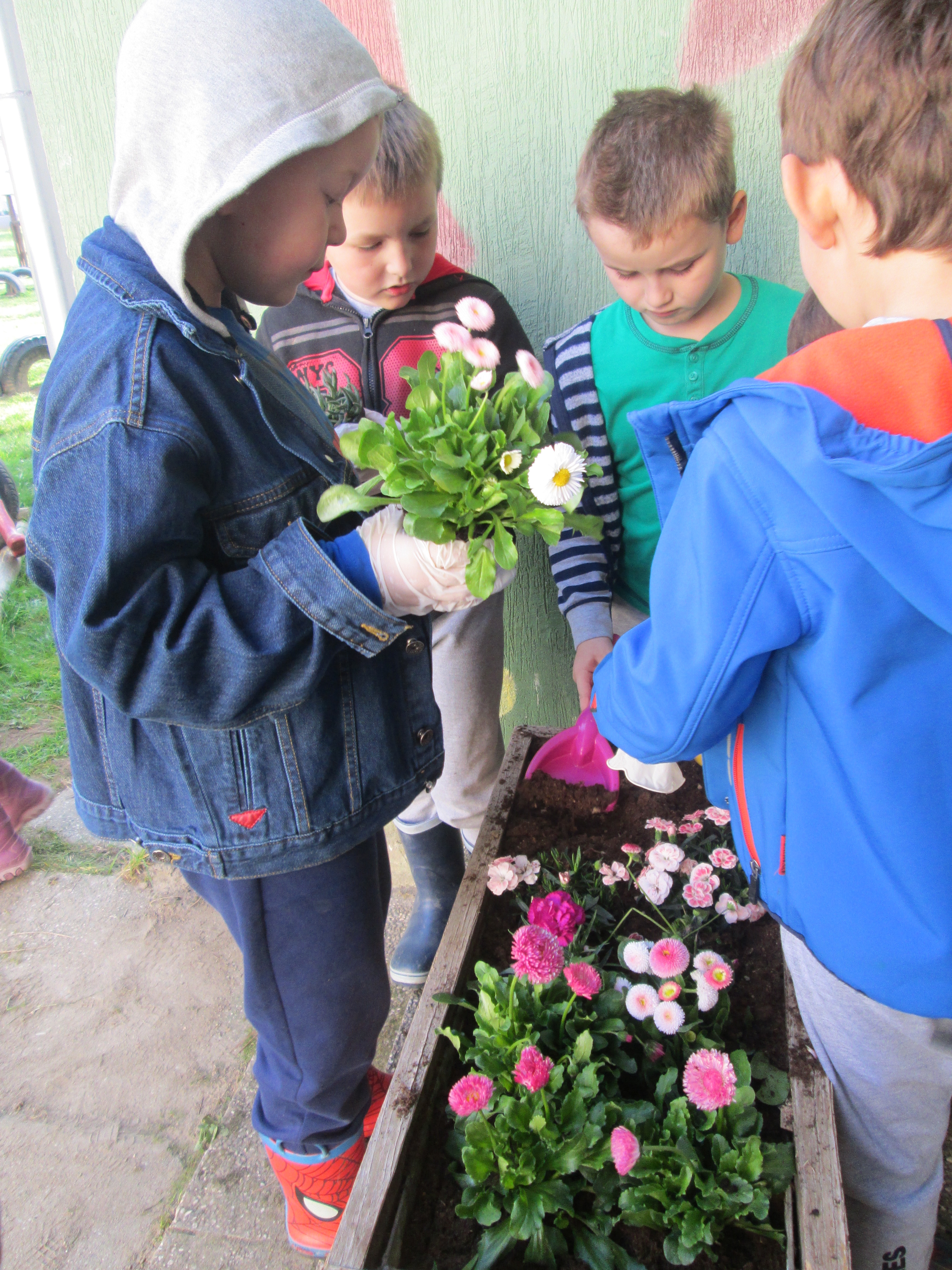 U petak, 31.03.2017. u Dječjem vrtiću Križevci održan je projektni dan. Od jutra je bilo živo i aktivno na našim terasama gdje su vrijedne ruke djece, odgojiteljica, roditelja i baka uređivale cvjetnjake. Sadnice smo prikupili u suradnji s roditeljima i Komunalnom poduzećem Križevci. Osim sadnica cvijeća zasađene su i sadnice drveća u suradnji sa Šumarijom Križevci. Eko patrola je budnim okom pratila odvijaju li se navedene aktivnosti pravilnim redoslijedom jer kako su sami rekli – trebamo pripremiti zemlju, iskopati rupu, staviti biljku, pritisnuti zemljom i zaliti. Da bi naše biljke rasle moramo im uz dobru zemlju, svjetlost i toplinu osigurati i dovoljno vlage pa će svaka odgojna skupina voditi brigu o svom malom cvjetnjaku i redovito ga zalijevati.